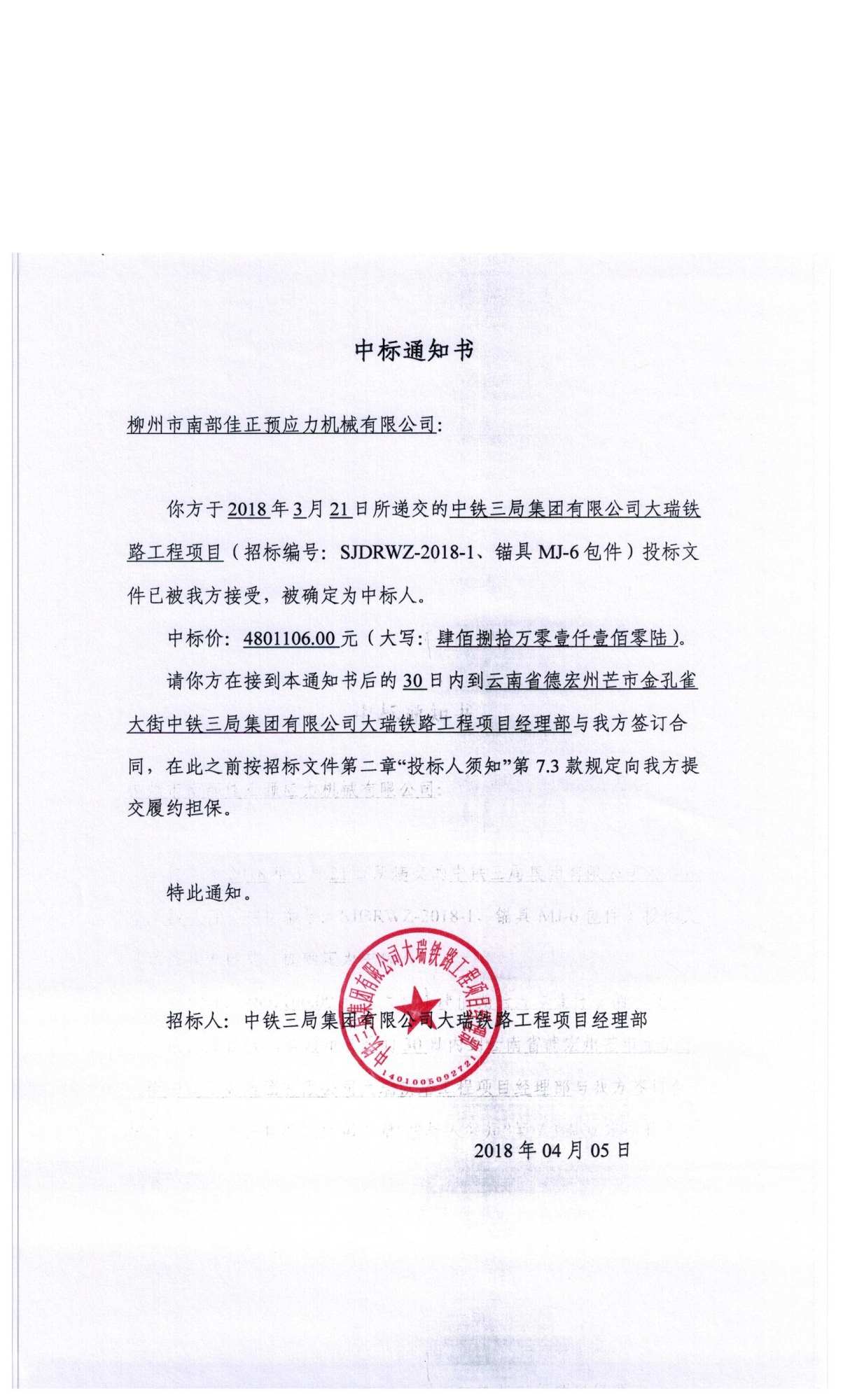China railway no. 3 railway anchorage acceptance notice